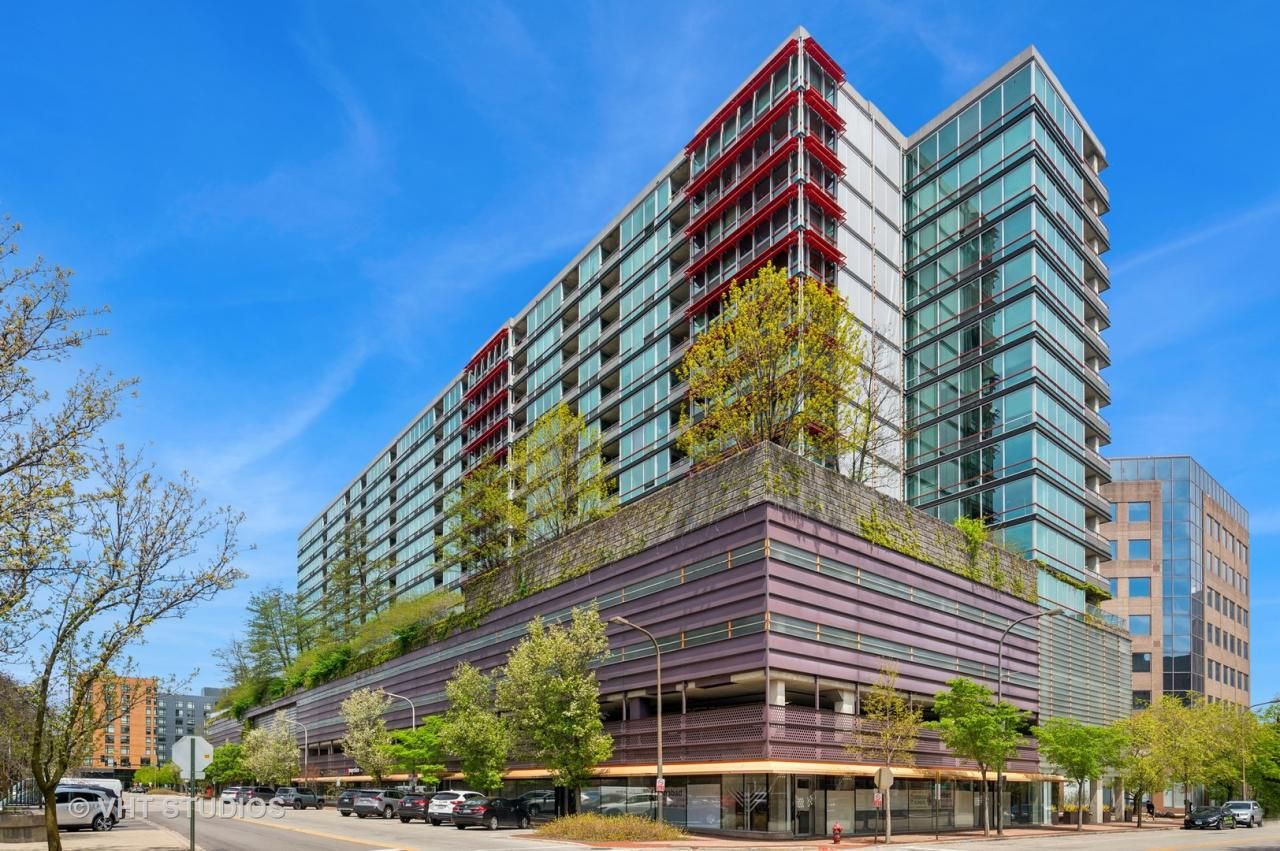Don't miss this desirable 1 bedroom plus den on the coveted Penthouse level at Optima Horizons. The open floorplan featuring new flooring with contemporary dining and kitchen lighting creates a serene and welcoming environment with terrific flow, perfect for entertaining. The kitchen overlooks the dining area, living room and balcony affording stunning sunset views through floor-to-ceiling windows. The spacious bedroom offers abundant storage with both double wardrobe and additional linen closets and a bedroom alcove overlooking the balcony provides the perfect space for a desk or reading nook. The den is accessed at the opposite end of the condo and offers flexibility for a home office or 2nd bedroom with its custom modern sliding glass wall for privacy. The bathroom updates include chic blue cabinetry with ample storage, brass hardware, raised bowl sink and new vanity lighting. Deeded parking in heated garage and full size storage are located on the 4th floor in this full amenity building with indoor pool, fitness center, beautifully landscaped outdoor terrace with grills, on site property manager and doorman. Don't miss this premier location walking distance to Northwestern, downtown Evanston restaurants and shops, both trains and the lakefront.